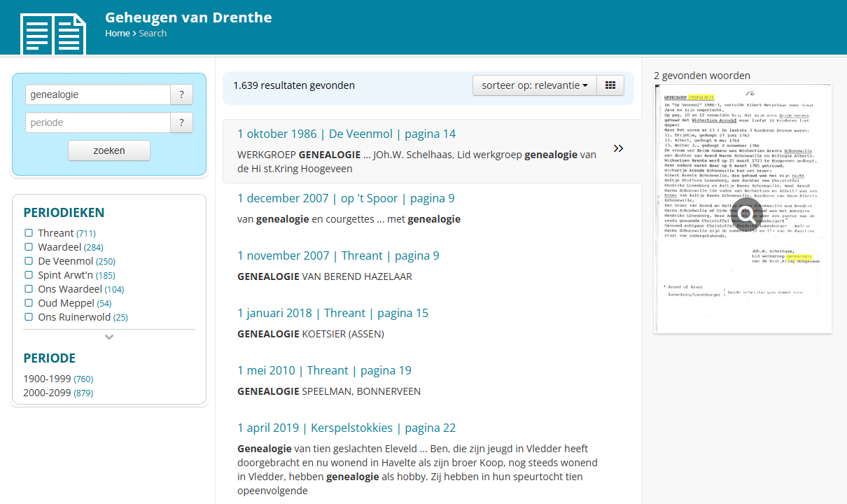Het Drents Archief is begonnen met een interessant project. Men is gestart met het ontwikkelen een Drentse `Delpher` als een soort klein zusje van ´Delpher´ van het Nationaal Archief. In de Delpher van het Nationaal Archief zitten miljoenen pagina´s van kranten, tijdschriften en boeken, die als geheel doorzoekbaar zijn. Hierdoor is veel historische informatie digitaal beschikbaar en doorzoekbaar geworden. Het Drents Archief is nu begonnen met het digitaliseren van Drentse historische tijdschriften en ons tijdschrift Threant is daar één van. De hoofdpaina is te vinden via https://geheugenvandrenthe.nl/