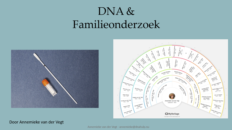 Tijdens de lezing vertelt Annemieke over de verschillende soorten DNA tests en wat er door zichtbaar wordt.