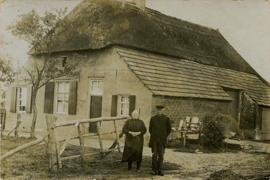 Voormalige boerderij ‘Stapperskamp’ in het buurtschap Worsum (1935-1936). Op de voorgrond de (voorlaatste) bewoners van de hoeve, het echtpaar Anna Maria Jans (1866-1938) en Lambertus Willems (1861-1957). In 1999 wordt de oude boerderij, ook wel bekend onder de naam ‘Stalburgkamp’, gesloopt en begint de nieuwbouw van de huidige Stapperskamp. Beeldbank RAN, publiek domein.